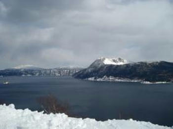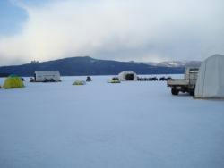 阿寒湖全面凍結で氷上フェスティバルが行われている