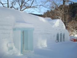 雪で出来た脱衣所はかまくらを大きくした感じ