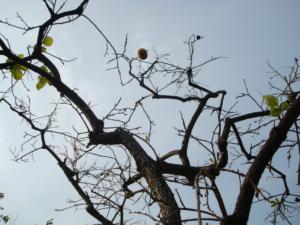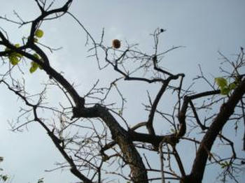柿はカラスに食べられ、葉っぱは毛虫に食べられ