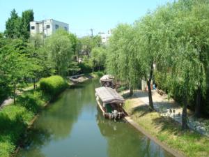 濠川(ほりかわ)沿いの柳並木が綺麗やった